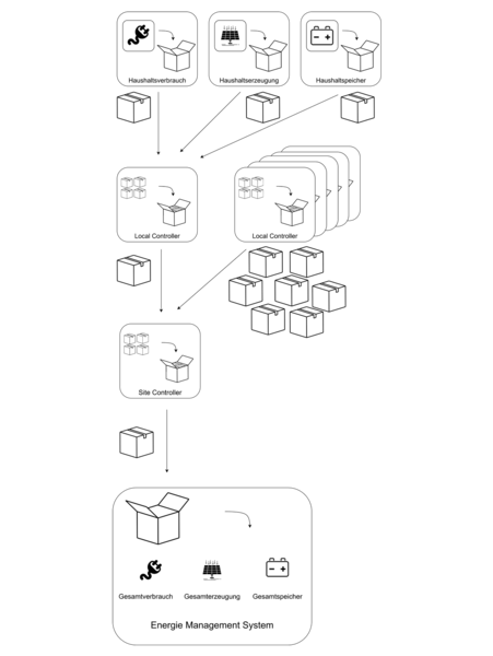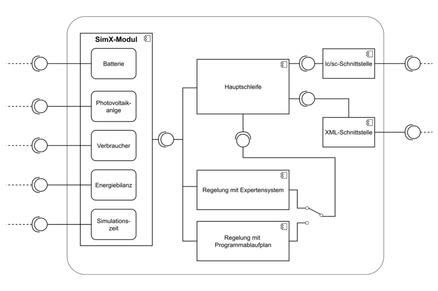 Die zentralen Einheiten für die Liegenschaften und das Niederspannungs- bzw. Ortsnetz werden in diesem AP konzeptioniert und implementiert. Es werden die grundlegenden Strukturen für die Überwachung und Regelung des Systems sowie Schnittstellen zu anderen Systemen geschaffen. Ziel des Systemdesigns ist es, ein dynamisches, modulares, skalierbares und frei konfigurierbares System zu schaffen. Die Regelung der einzelnen energetischen Komponenten erfolgt hierbei durch ein regelbasiertes System (Experten System). Das so entstehende System wird im „Hardware in the Loop“ simulativ erprobt und muss neben dem Echtzeit-Betriebt ebenfalls zeitlich skalierbar sein. Dadurch können in kurzer Zeit verschiedene Szenarien erstellt und die hinterlegten Regeln validiert und erweitert werden.