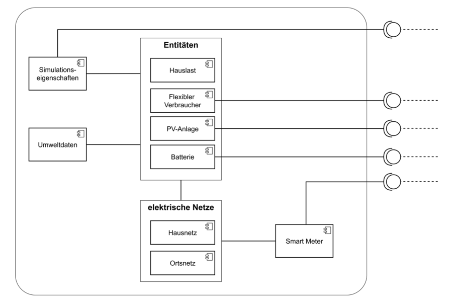 Um die Funktionsweise des Energiemanagementsystem zu überprüfen, werden Akteure aus dem Niederspannungsnetz in der objektorientierten Simulationsumgebung von SimulationX modelliert. Dazu werden Simulationsobjekte für verschiedene energetische Anlagen mit besonderem Fokus auf sektorkoppelnde Technologien wie Wärmepumpen oder Elektromobilität erstellt. Anhand von energiewirtschaftlichen Rahmenbedingungen, Betriebslogiken und Freiheitsgraden der betrachteten Technologien und dem agentengetriebenen Verhalten werden Regeln für das Energiemanagement abgeleitet und ihre Auswirkungen auf das modellierte System quantifiziert. Daraus werden Aussagen zur notwendigen realen Datenerfassung und zur Schaffung smarter Anreize zur effizienten und effektiven Steuerung des Verhaltens der Akteure abgeleitet.